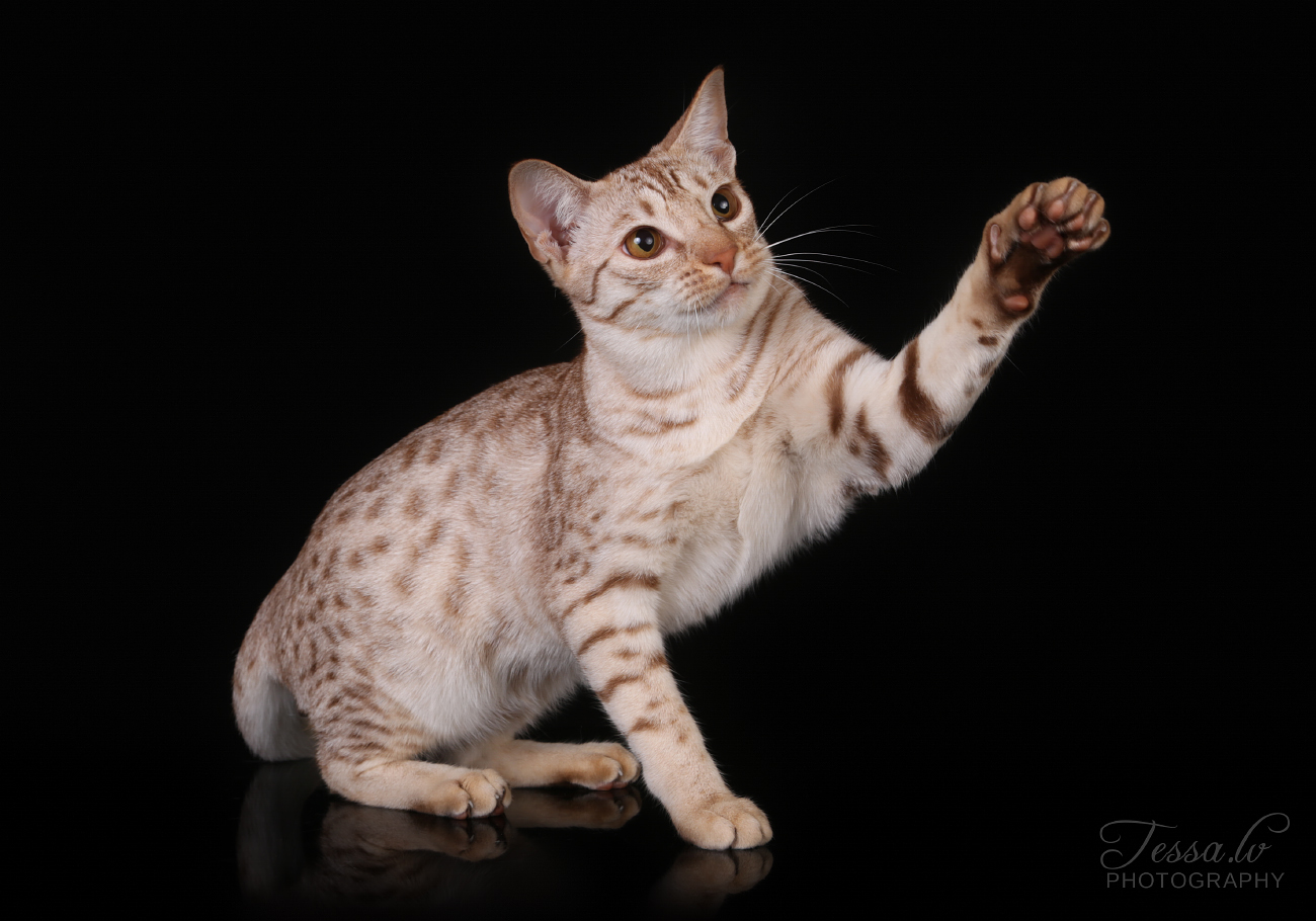 Karma on kanelihopeatäplikäs oma kasvattini. Sillä on super upea turkinlaatu, todella kauniit täplät ja kontrasti. Lihaksikas kroppa hyvillä mittasuhteilla.